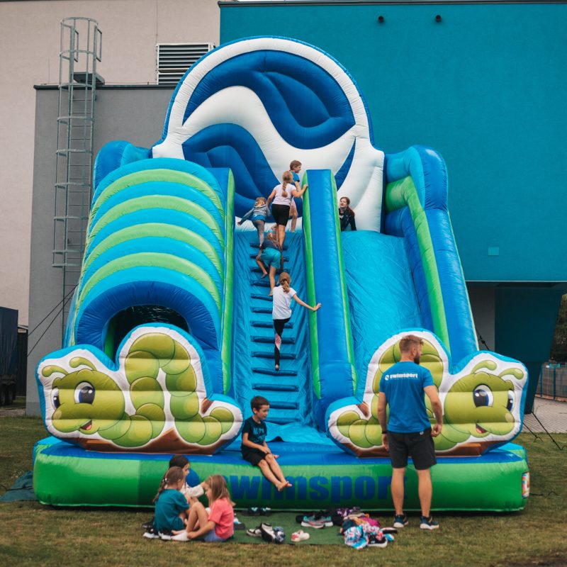 Dmuchana zjeżdżalnia Swimsport to nasz customowy dmuchaniec, którym możecie cieszyć się razem z nami!