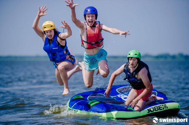 Młodzieżowy profilowany obóz SwimSport – bardzo ciekawa forma obozu sportowego dla nieco starszych. Wypoczynek zorganizowany z bogatym programem: windsurfing, żeglarstwo, taniec, survival, konie, sporty wodne i wiele wspólnych działań, które budujemy relacje i niesamowite wspomnienia