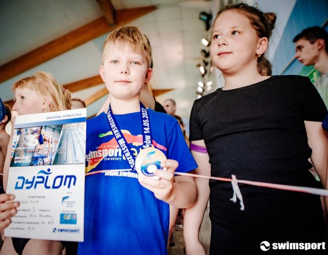 VI Amatorskie Mistrzostw w Pływaniu – Skoczów 2022r VI Amatorskie Mistrzostwa Skoczowa Pływaniu 14.05.2022 Powrót do startów po 2 latach kiedy dzieci nie mogły rywalizować w zawodach. Ponad 300 zawodników i zawodniczek z 12 szkół pływania 116 medali dobyli zawodnicy Szkoły Pływania SwimSport