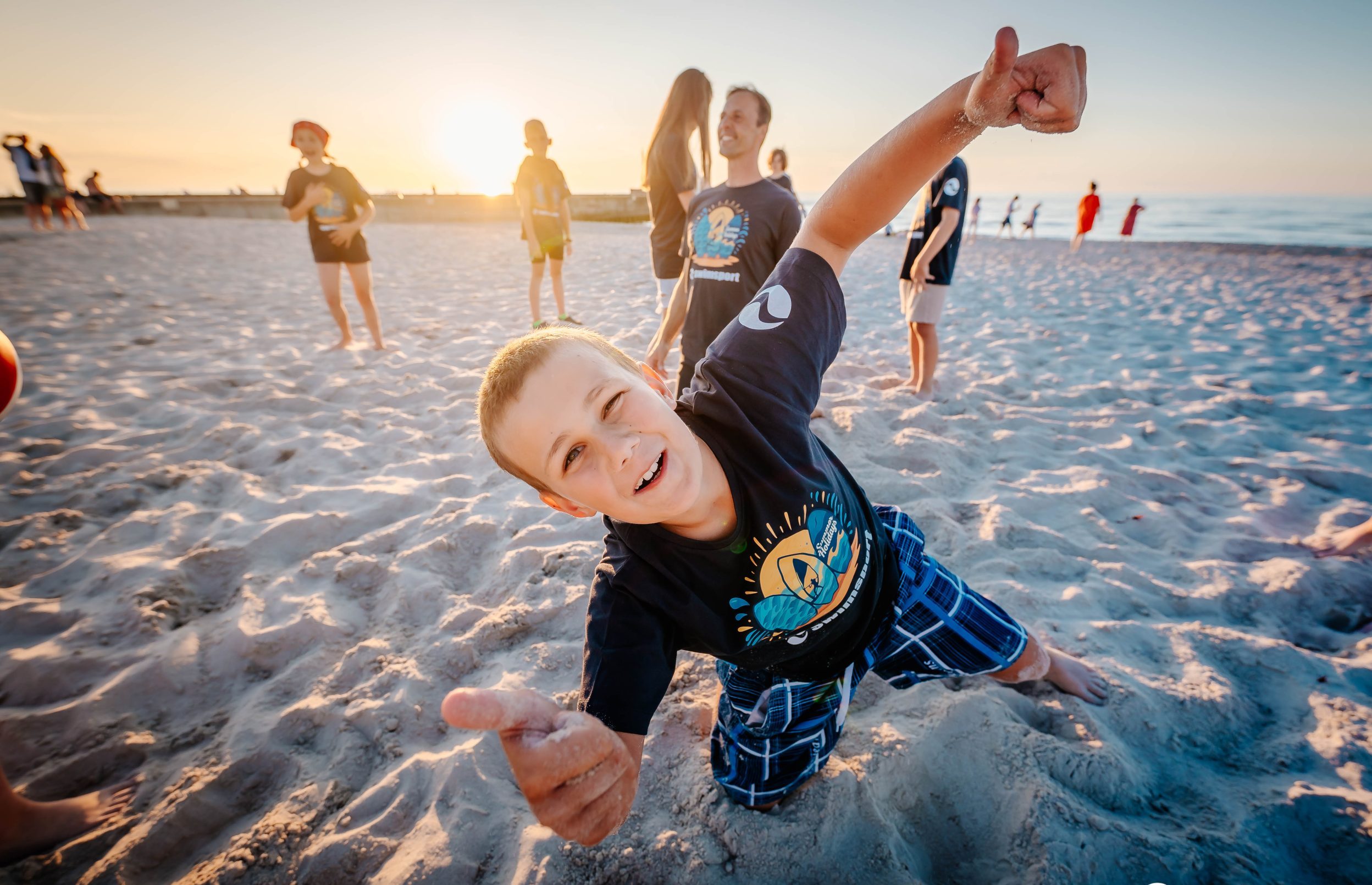 Wszyscy członkowie kadry posiadają wymagane kwalifikacje, odpowiednie przeszkolenia oraz doświadczenie wychowawcze, a także bardzo dobrze znają specyfikę pobytu i codzienne życie w Dźwirzynie. Bezpieczeństwo uczestników jest dla nas priorytetem — zarówno podczas zajęć sportowych i rekreacyjnych, jak i w czasie codziennego funkcjonowania obozu, odpoczynku oraz wyjść na plażę czy zajęć terenowych.