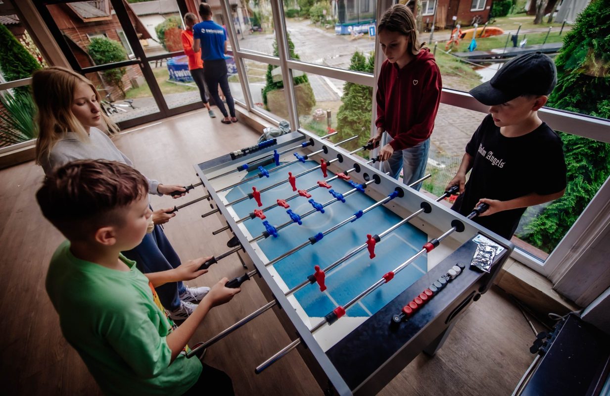 - Namiot z grami i automatami do gier: cymbergaj, bilard, piłkarzyki, automat do gry w koszykówkę, 2 stoły do pingponga – atrakcje dostępne dla uczestników przez cały czas trwania obozu