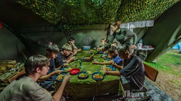 nocne podchody i zadania zespołowe,