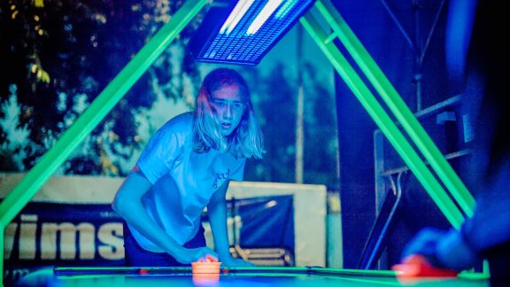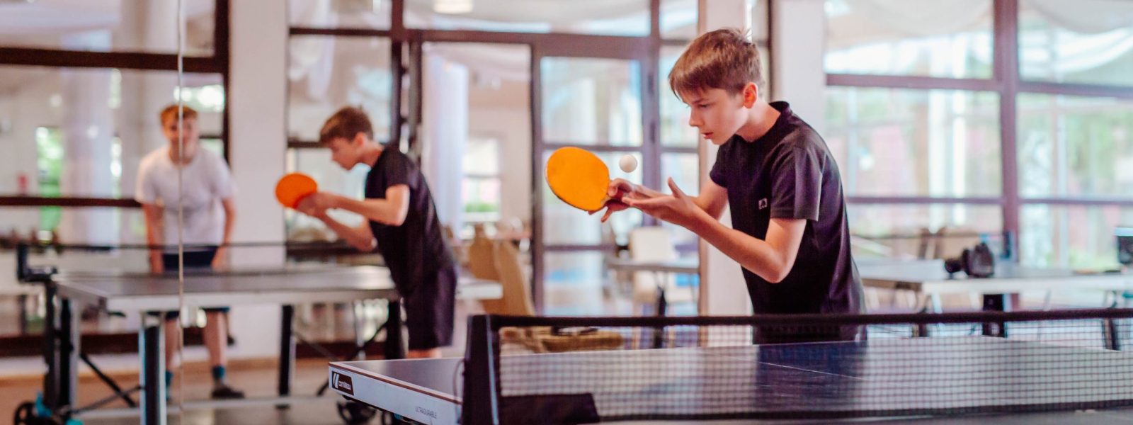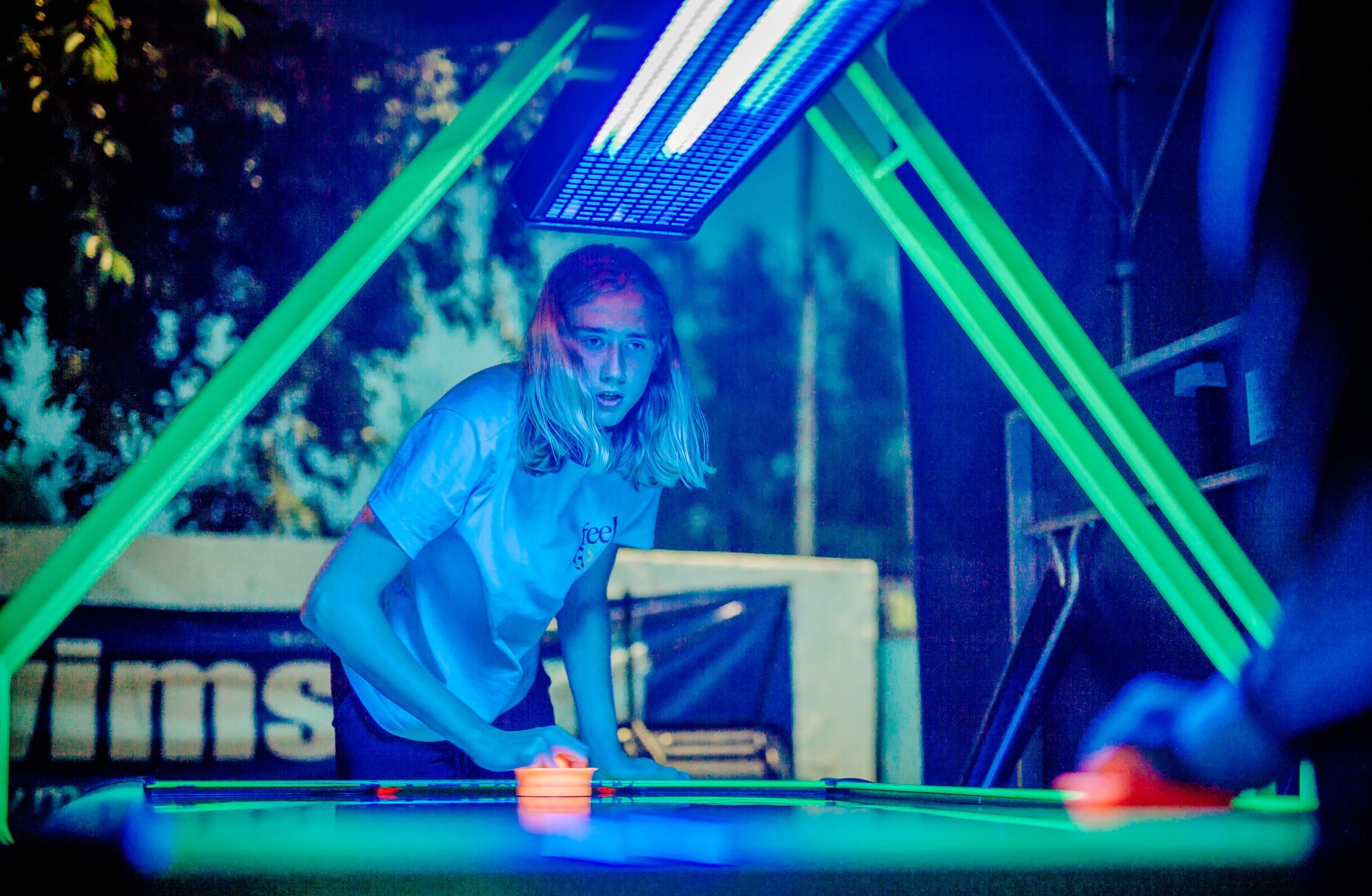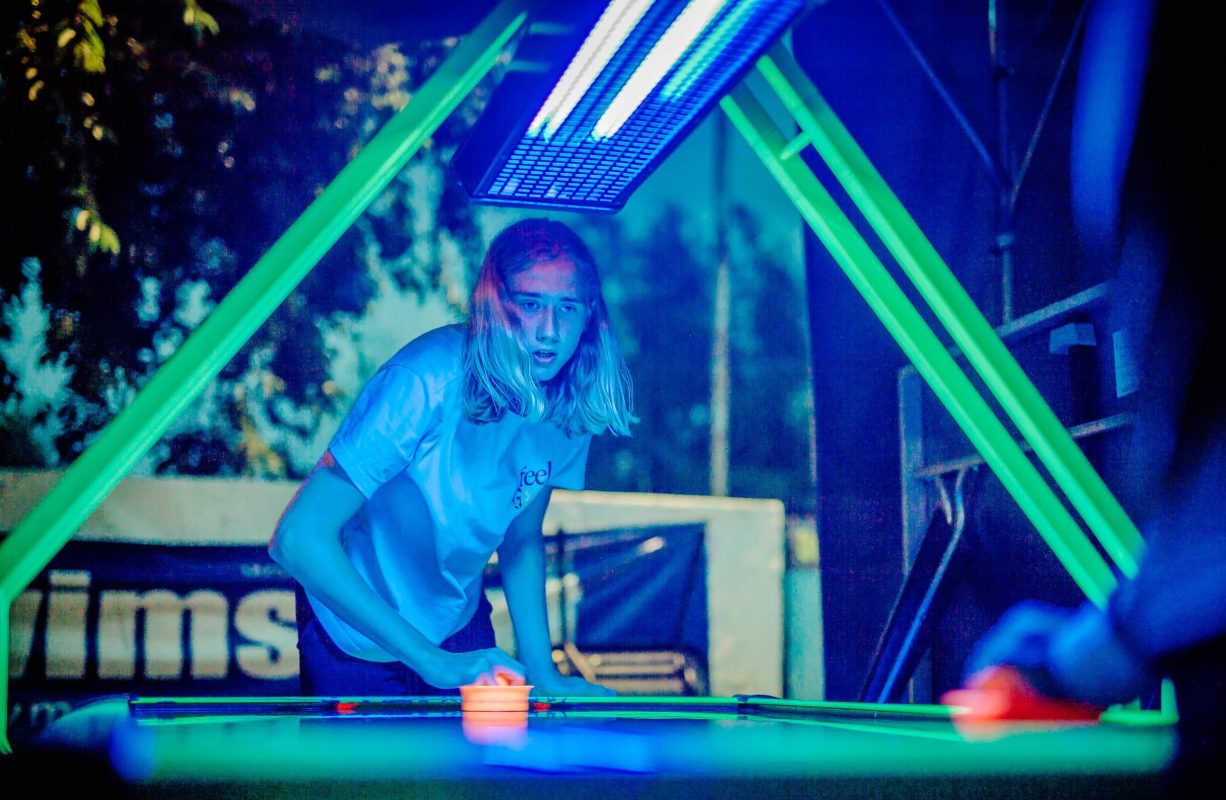 - Namiot z grami: cymbergaj, bilard, piłkarzyki, automat do koszykówki, 2 stoły ping-pongowe